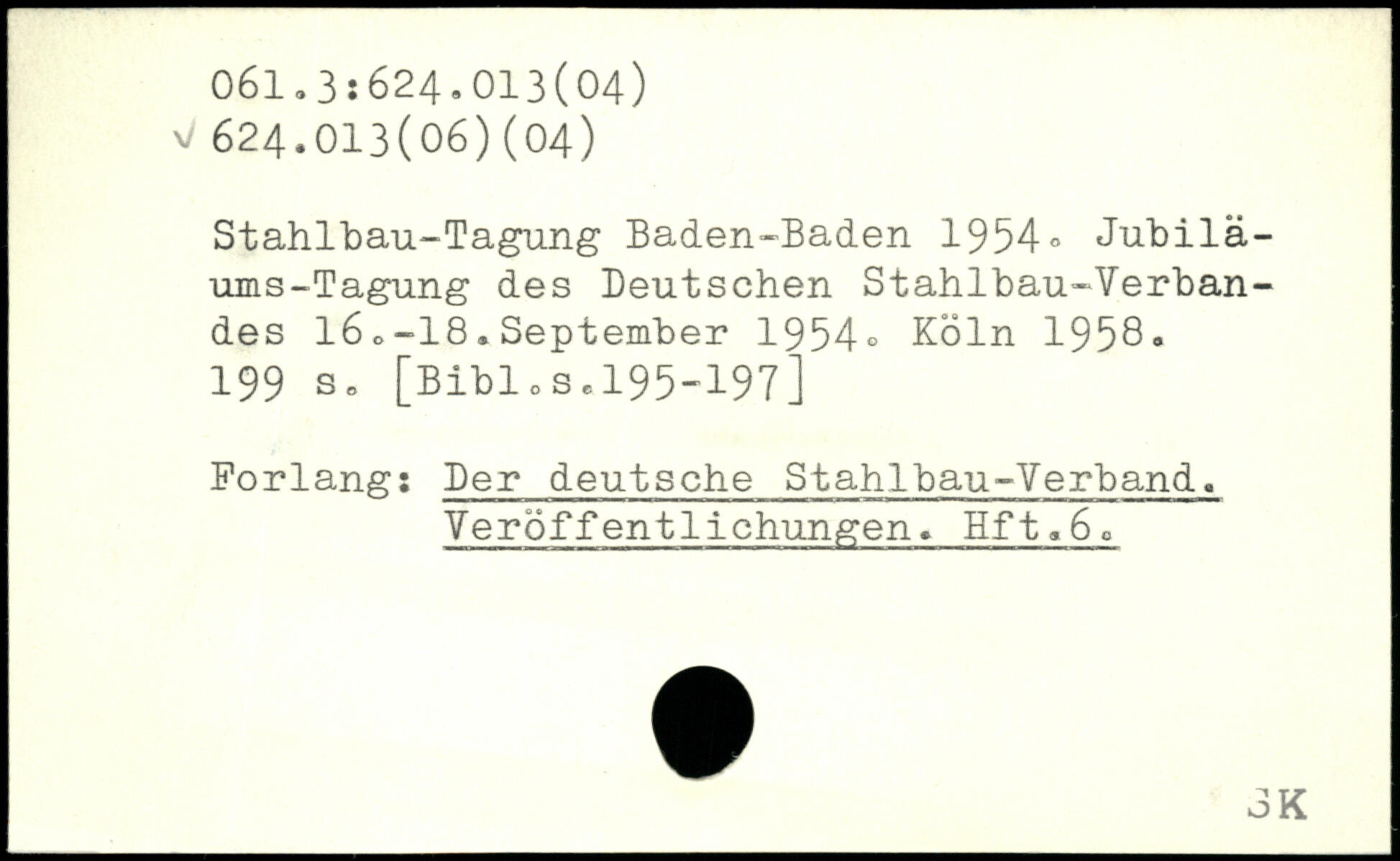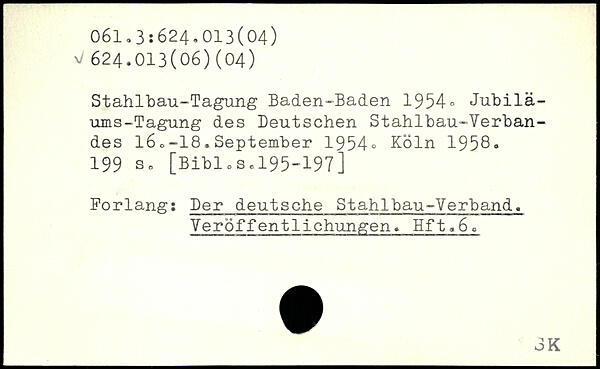 Stahlbau-Tagung Baden-Baden 1954, Jubilä-ums-Tagung des Deutschen Stahlbau-Verbandes 16o-18.September 1954.