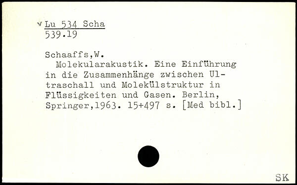 Molekularakustik. Eine Einführung in die Zusammenhänge zwischen Ultraschall und Molekülstruktur in Flüssigkeiten und Gasen.