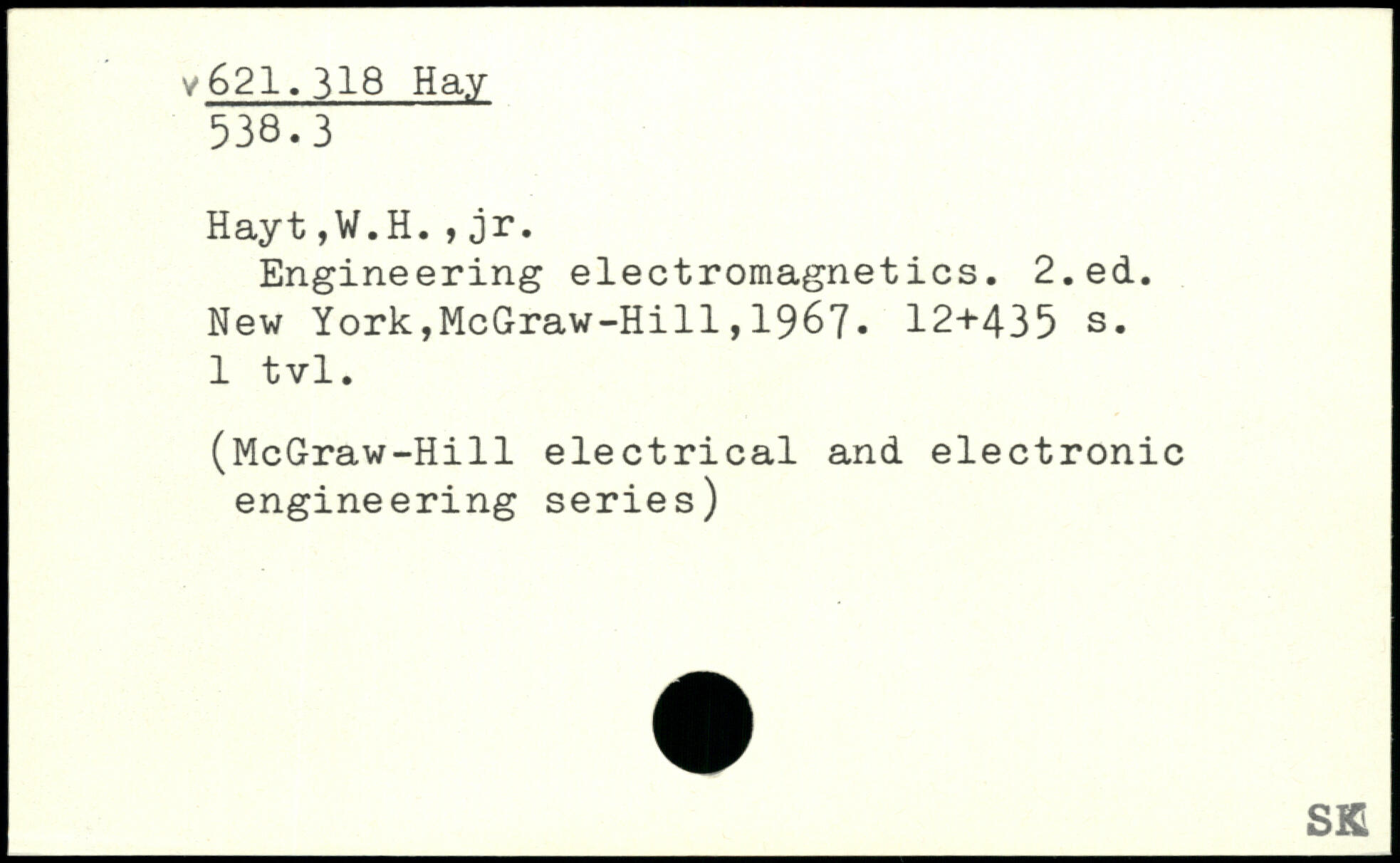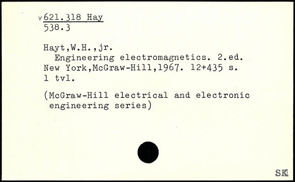 Engineering electromagnetics.