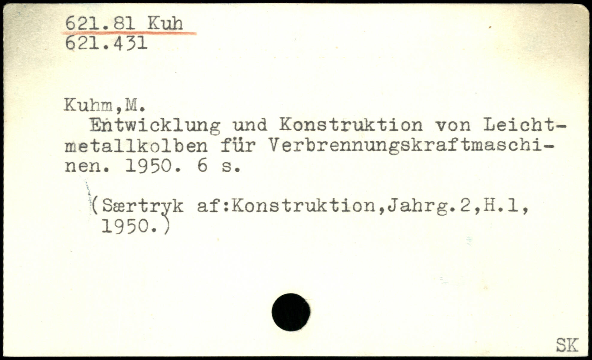 Entwicklung und Konstruktion von Leichtmetallkolben für Verbrennungskraftmaschi-nen. 1950.