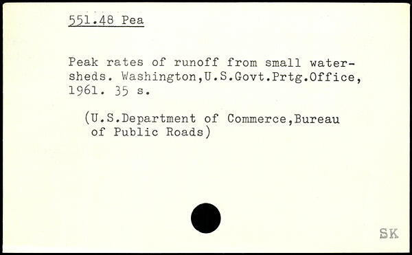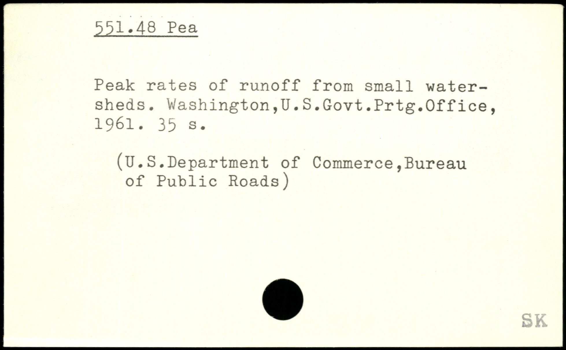 Peak rates of runoff from small watersheds. Washington,U.S.Govt.Prtg.Office, 1961.