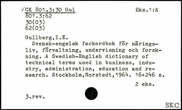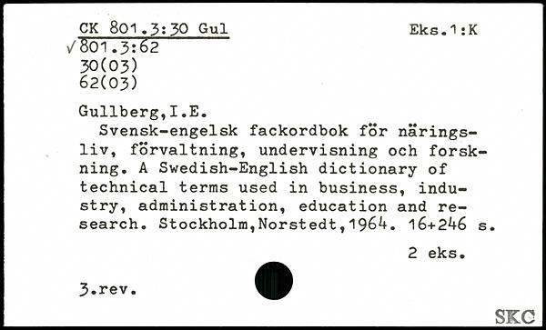 Svensk-engelsk fackordbok för näringsliv, förvaltning, undervisning och forskning, A Swedish-English dictionary of technical terms used in business, industry, administration, education and research