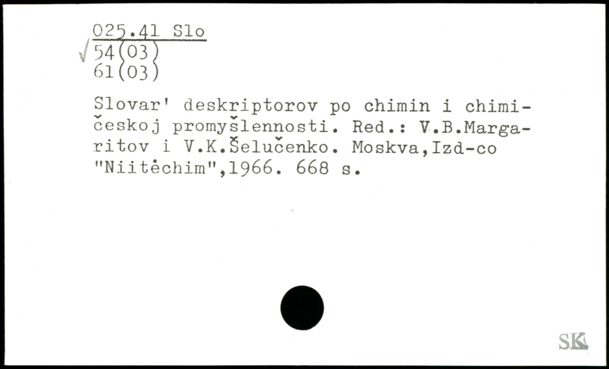 Slovar' deskriptorov po chimin i chimi-ceskoj promyslennosti. Red.ï V.B.Marga-ritov i V.K.Selucenko. Moskva,Izd-co "Niitêchim",1966.
