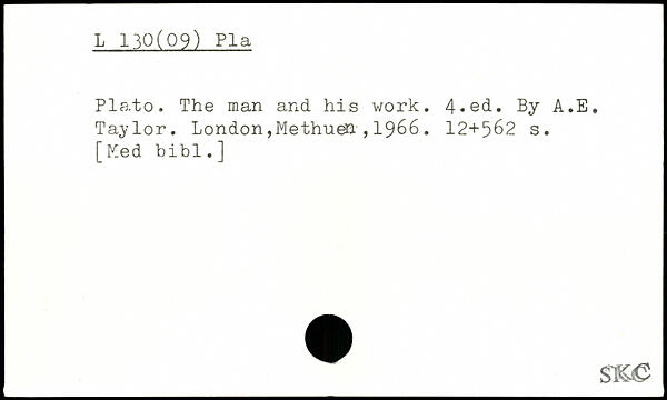 Plato. The man and his work. 4.e<i. By A.E, Taylor.