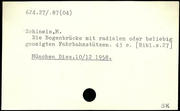 ' Schineis,M. Die Bogenbrücke mit radialen oder beliebig geneigten Fahrbahnstützen.