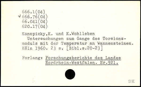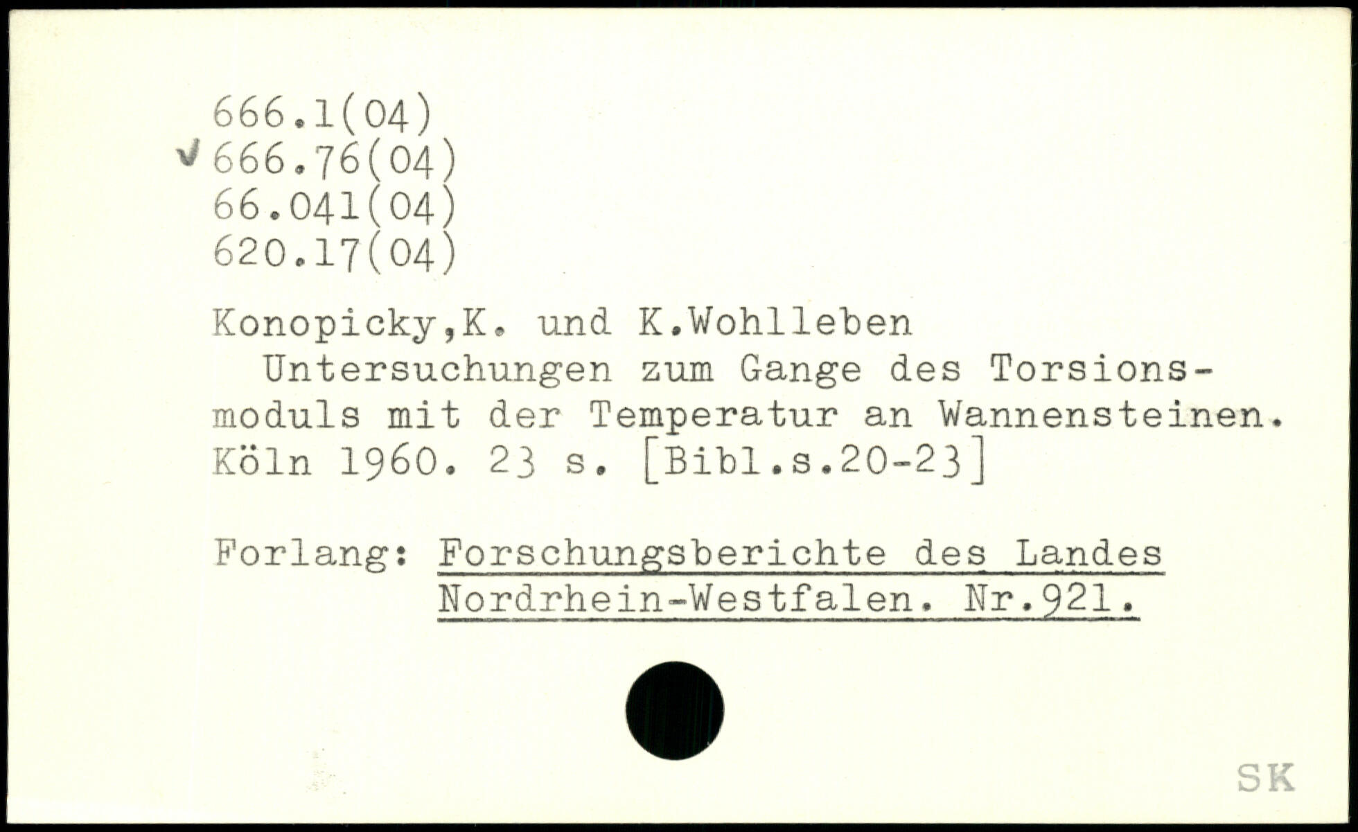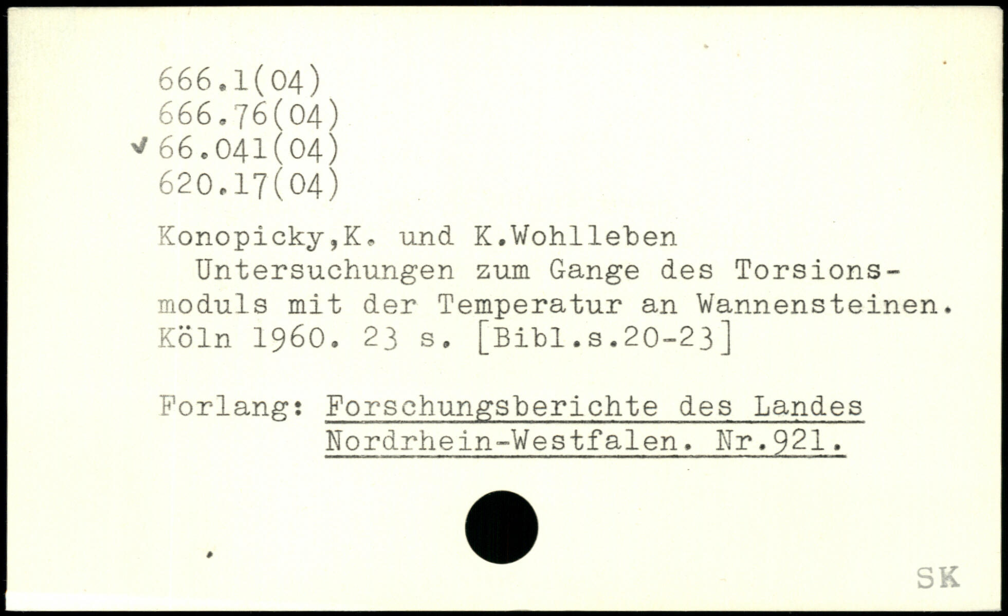 Konopicky,K. und K.Wohlleben ; Untersuchungen zum Gange des Torsionsmoduls mit der Temperatur an Wannensteinen.