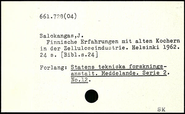 Finnische Erfahrungen mit alten Kochern in der Zelluloseindustrie, Helsinki 19&2.