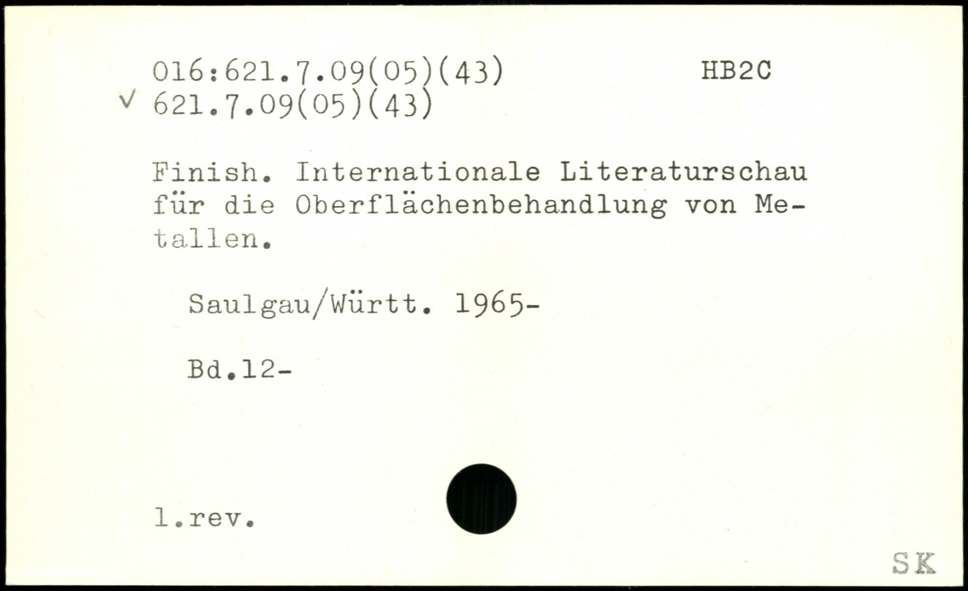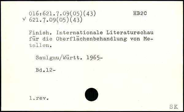 Finish. Internationale Literaturschau für die Oberflächenbehandlung von Metallen. Saulgau/württ. 1965-
