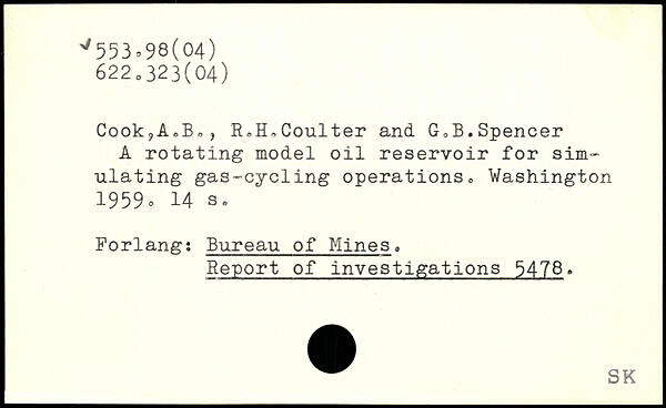 CookjAeBn, R,HaCoulter and G,B.Spencer A rotating model oil reservoir for simulating gas-cycling operations