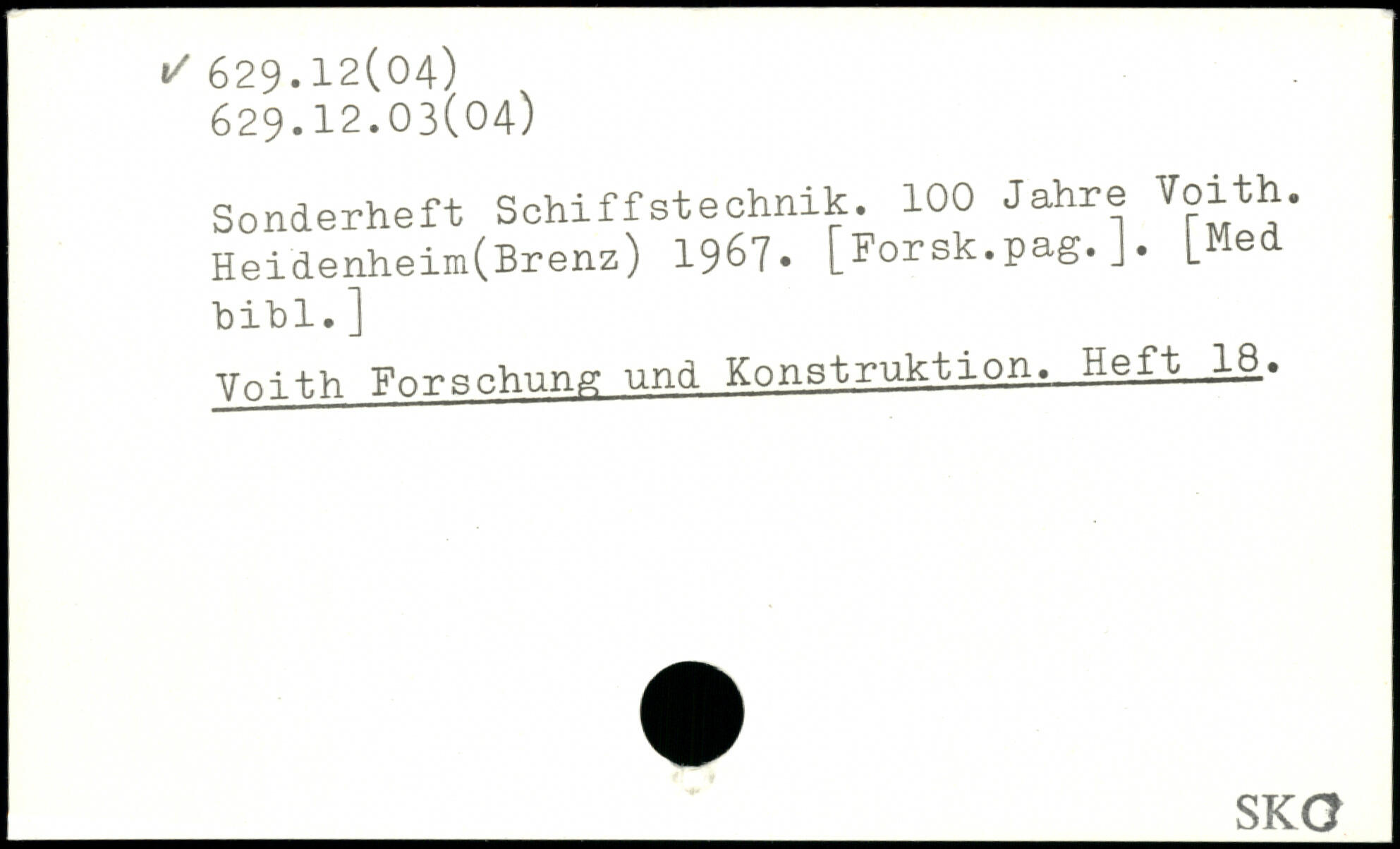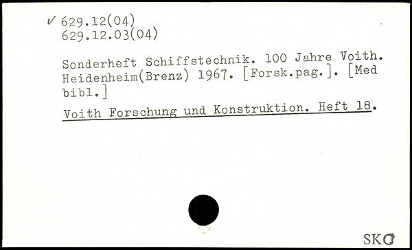 Sonderheft Schiffstechnik. 100 Jahre Voith. Heidenheim(Brenz) 1967. [Forsk.pag.J. LMed bibl.] Voith Forschung und Konstruktion. Heft 18.