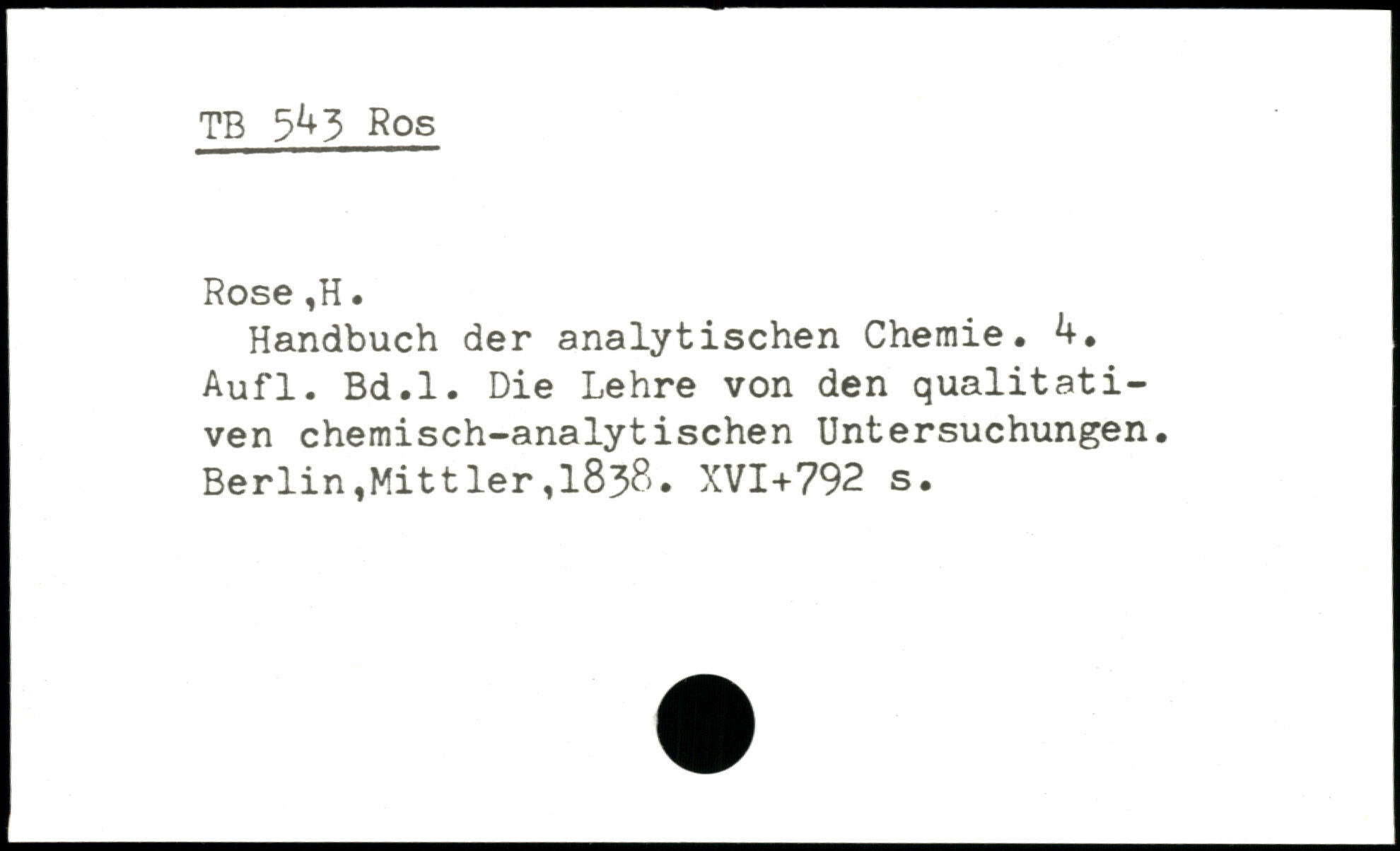 Handbuch der analytischen Chemie, .+. Aufl. Bd.l. Die Lehre von den qualitativen chemisch-analytischen Untersuchungen.
