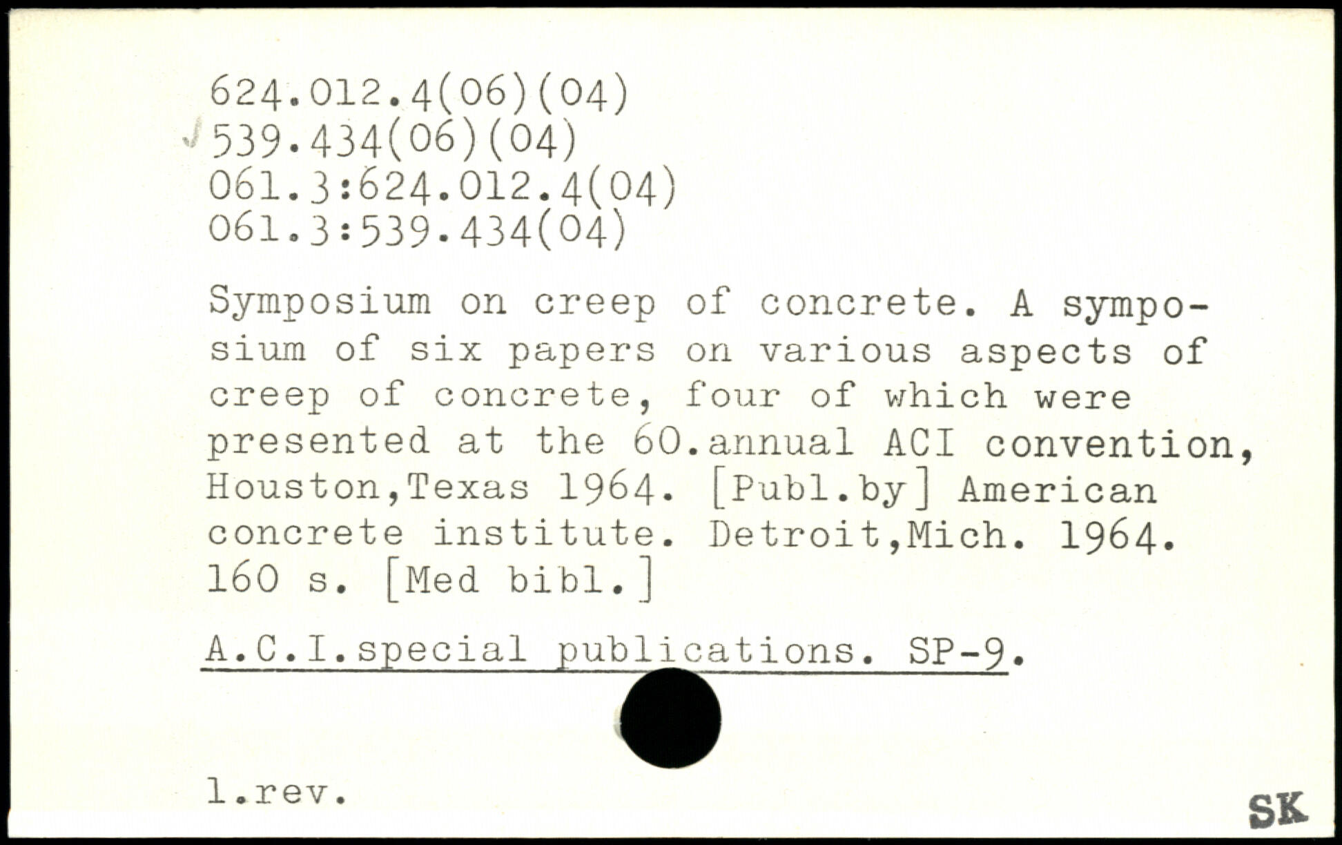 Symposium on creep of concrete. A symposium of six papers on various aspects of creep of concrete, four of which were presented at the 60.annual ACI convention, Houston,Texas 1964.