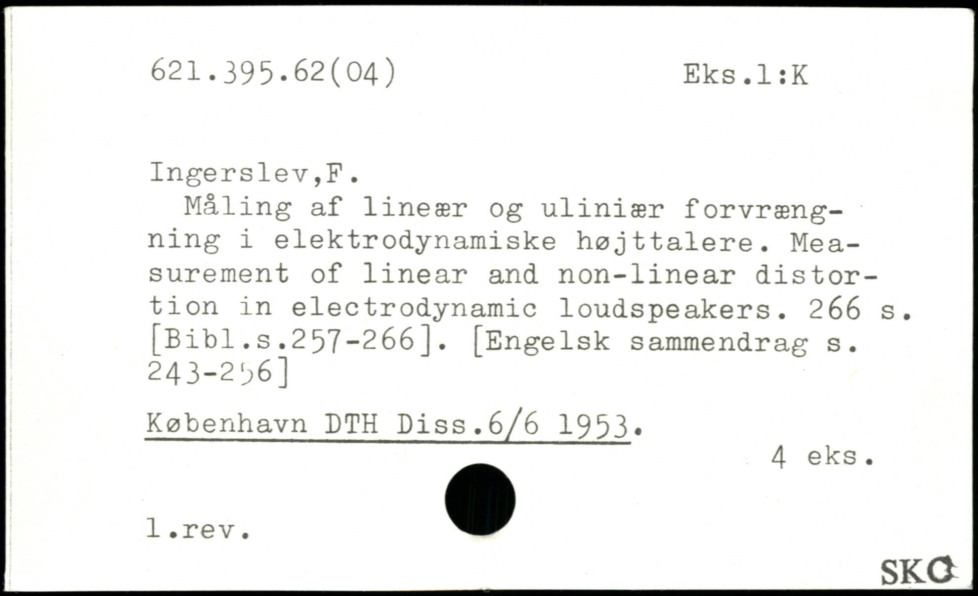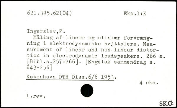Måling af lineær og uliniær forvrængning i elektrodynamiske højttalere. Measurement of linear and non-linear distortion in electrodynamic loudspeakers.