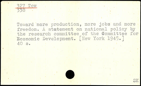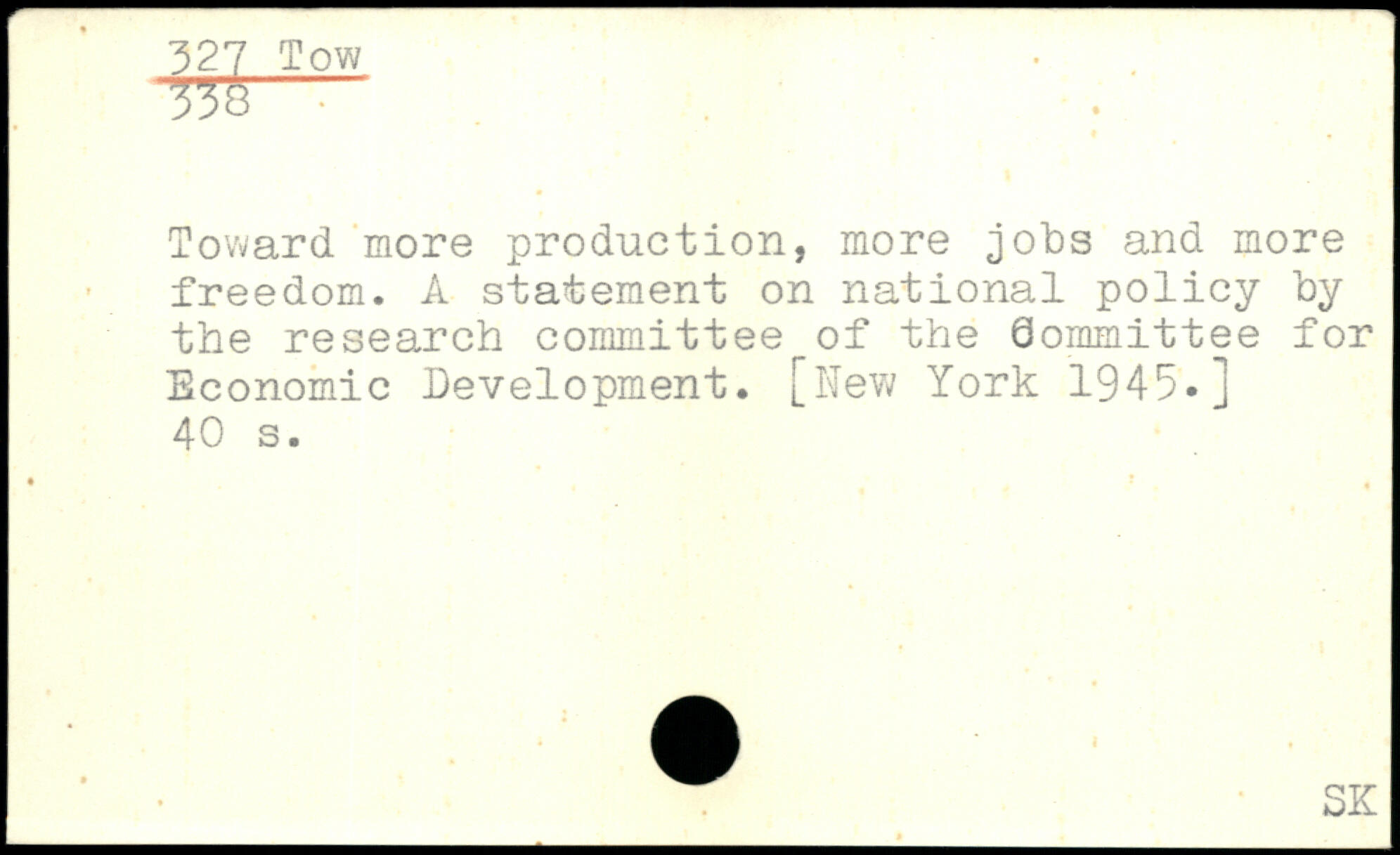 Toward more production, more jots and more freedom. A statement on national policy by the research committee of the Qommittee for Economic Development.