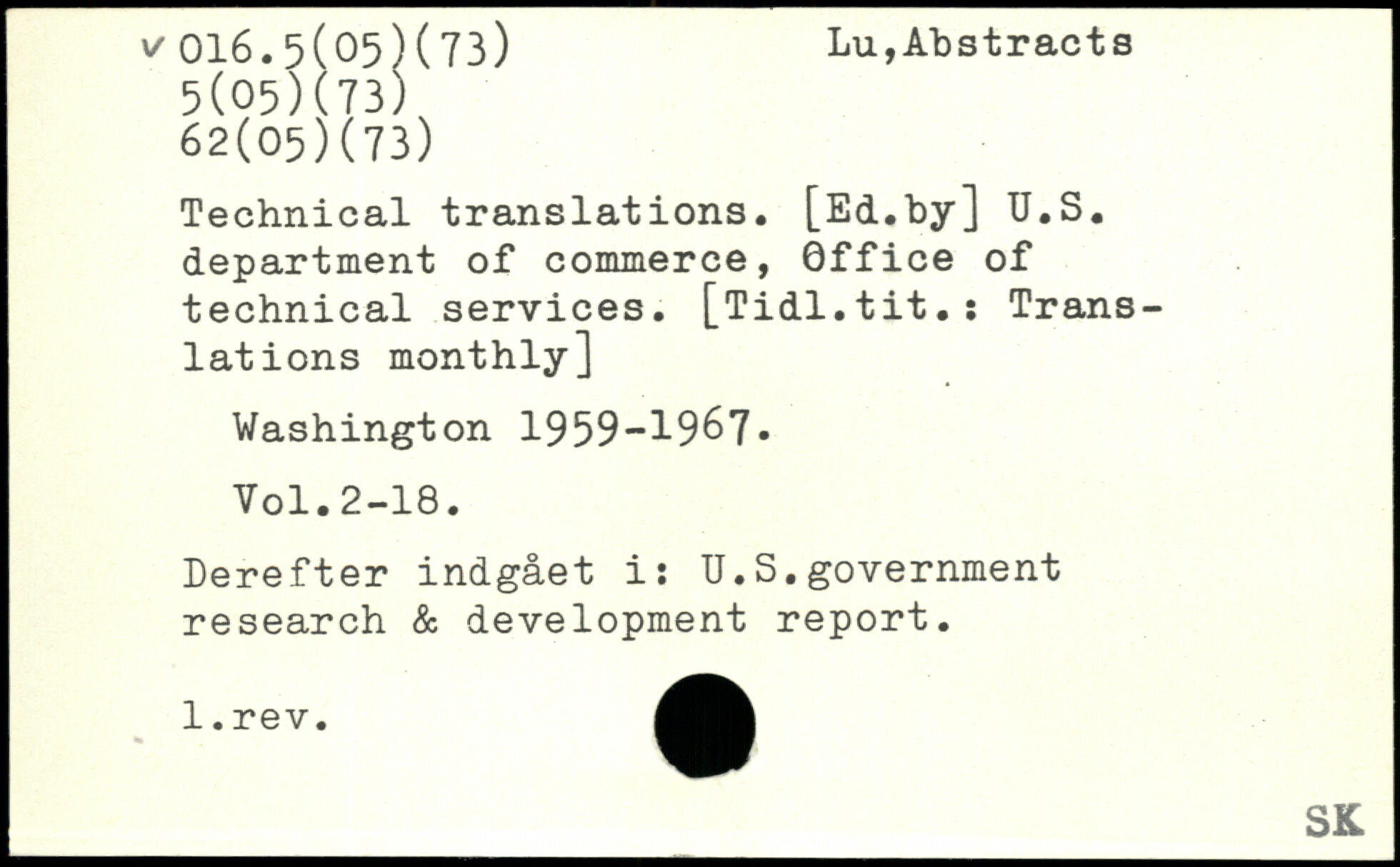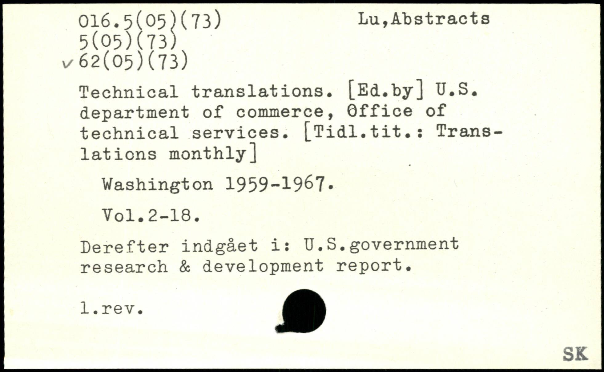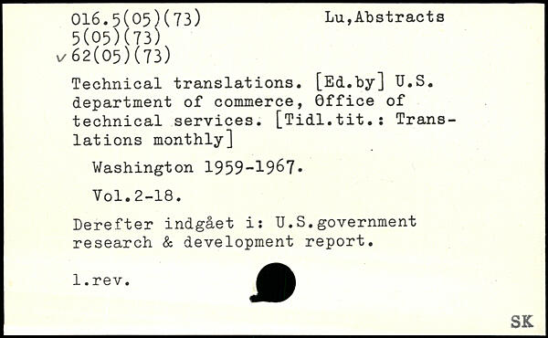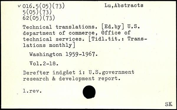 Technical translations. [Ed.by] U.S. department of commerce, Office of technical services. [Tidl.tit.î Translations monthly]