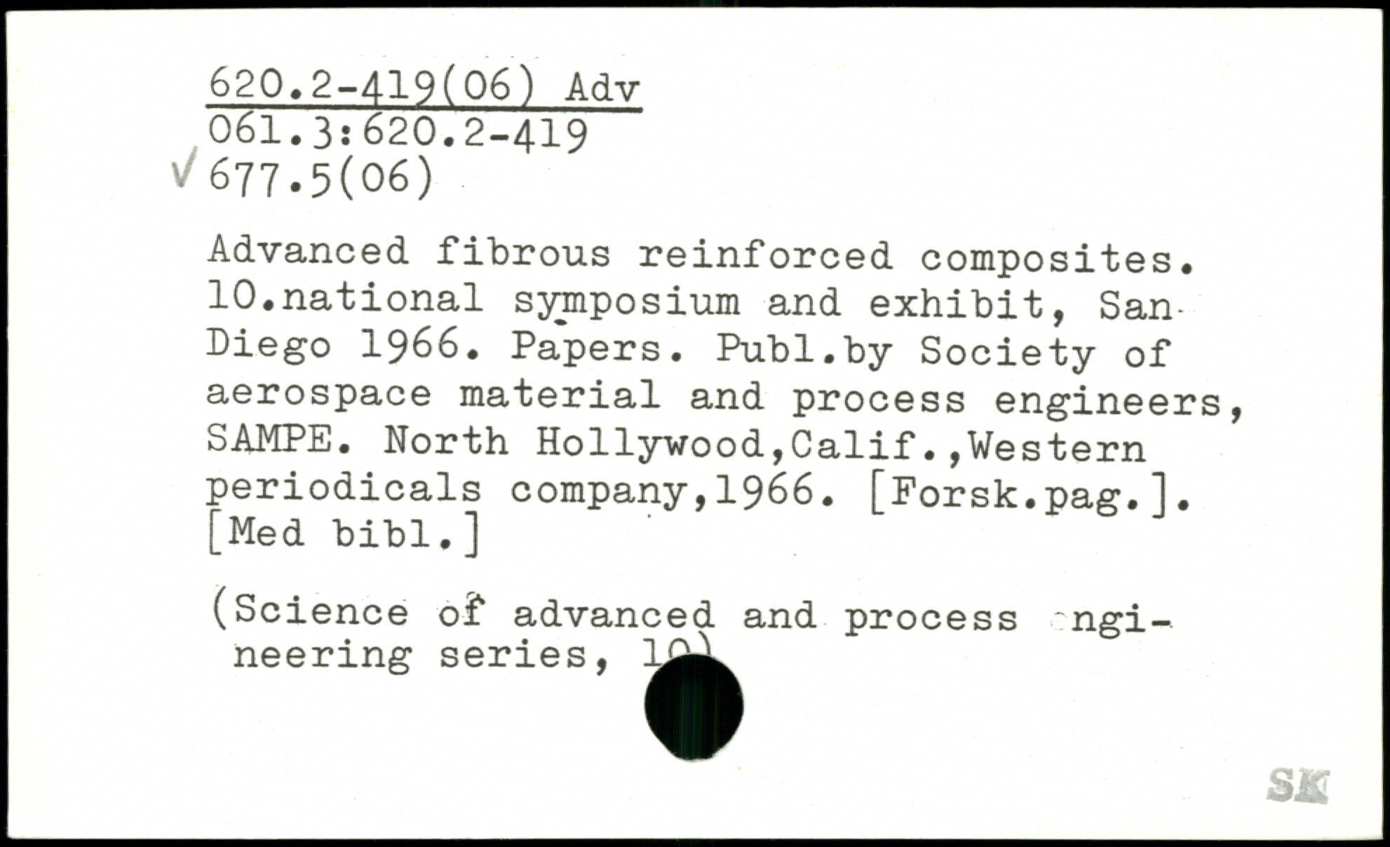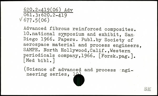 Advanced fibrous reinforced composites. 10.national symposium and exhibit, San-Diego 1966. Papers.