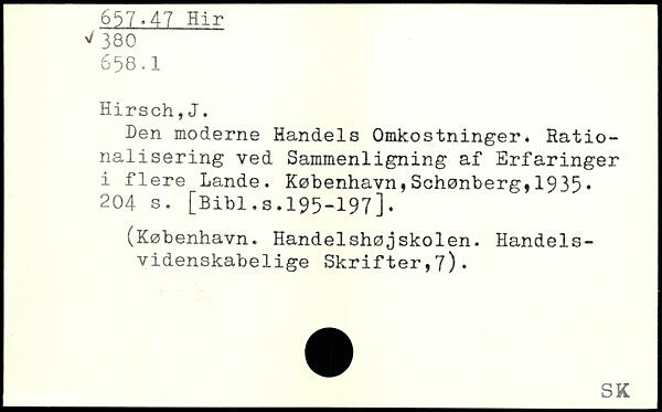 Den moderne Handels Omkostninger. Rationalisering ved Sammenligning af Erfaringer i flere Lande.