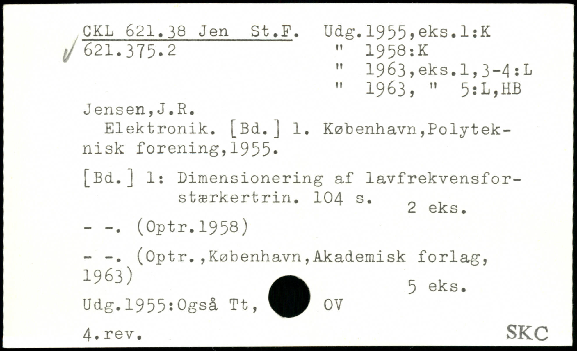 " 1963,eks.1,3-4:L " 1963, " 5:L,HB J ensen,J.R. Elektronik. [Bd.] 1.