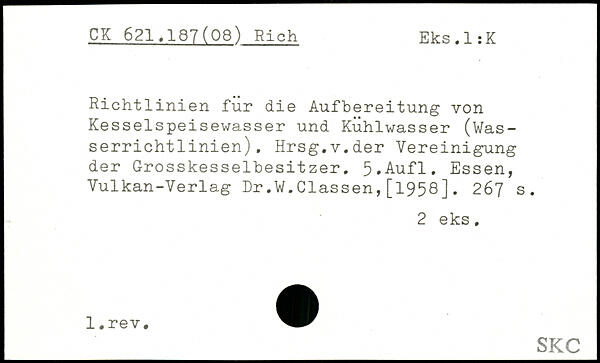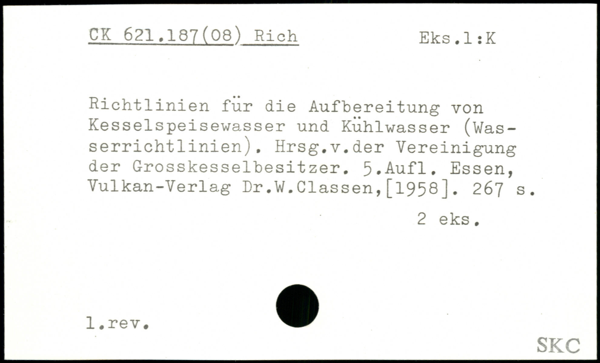 Richtlinien für die Aufbereitung von Kesselspeisewasser und Kühlwasser (Was-serrichtlinien). Hrsg.v.der Vereinigung der Grosskesselbesitzer.