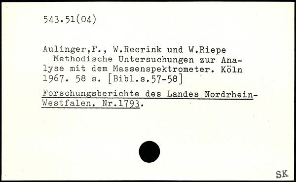 Aulinger,F., W.Reerink und W.Riepe Methodische Untersuchungen zur Analyse mit dem Massenspektrometer.