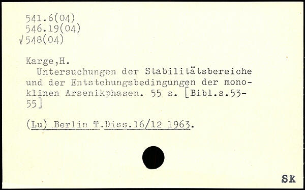 Untersuchungen der Stabilitätsbereiche und der Entstehungsbedingungen der monoklinen Arsenikphasen.
