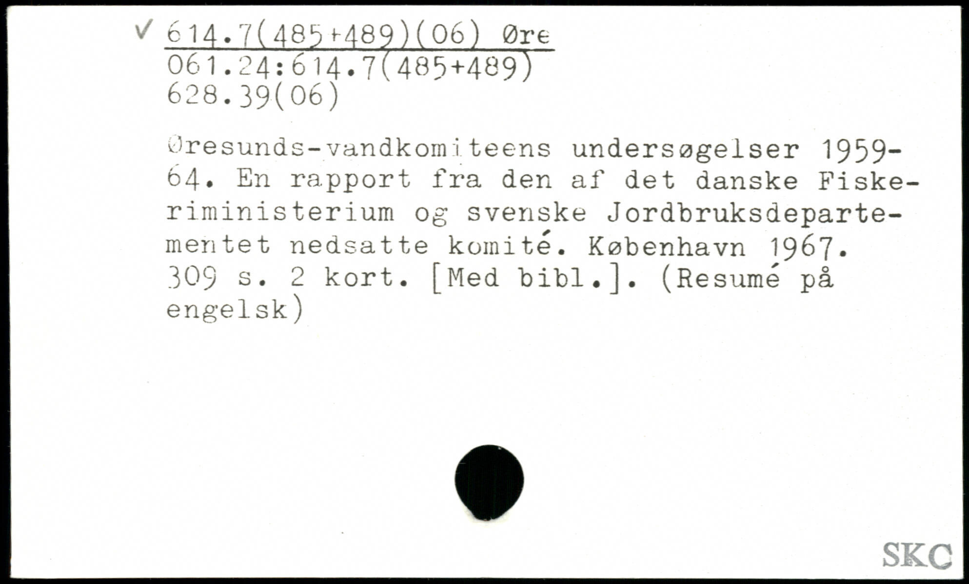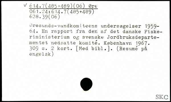Öresunds-vandkom:i teens undersøgelser 1959” 64. En rapport fra den af det danske Fiskeriministerium og svenske Jordbruksdepartementet nedsatte komité.