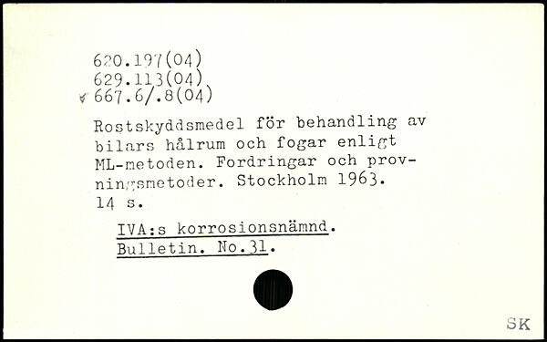Rost skyddsmedel for behandling av bilars hålrum och fogar enligt ML-netoden. Fordringar och prov-ningsnetoder.