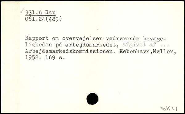 Rapport om overvejelser vedrørende bevæge-ligheden på arbejdsmarkedet, afgivet af ... Arbejd smarke d skommi s s i onen. Køb enhavn,Mø11er, 1952o