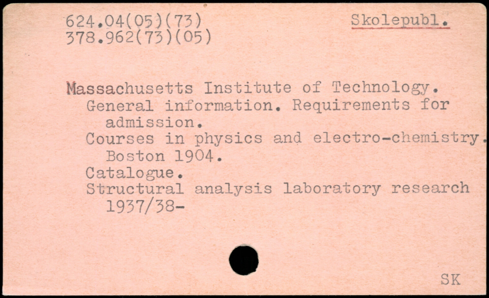 Massachusetts Institute of Technology. G-eneral information. Requirements for admission. Courses in physics and electro-chemistry. Boston 1904. Catalogue. Structural analysis laboratory research 1937/38-