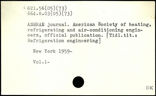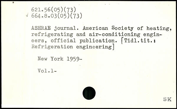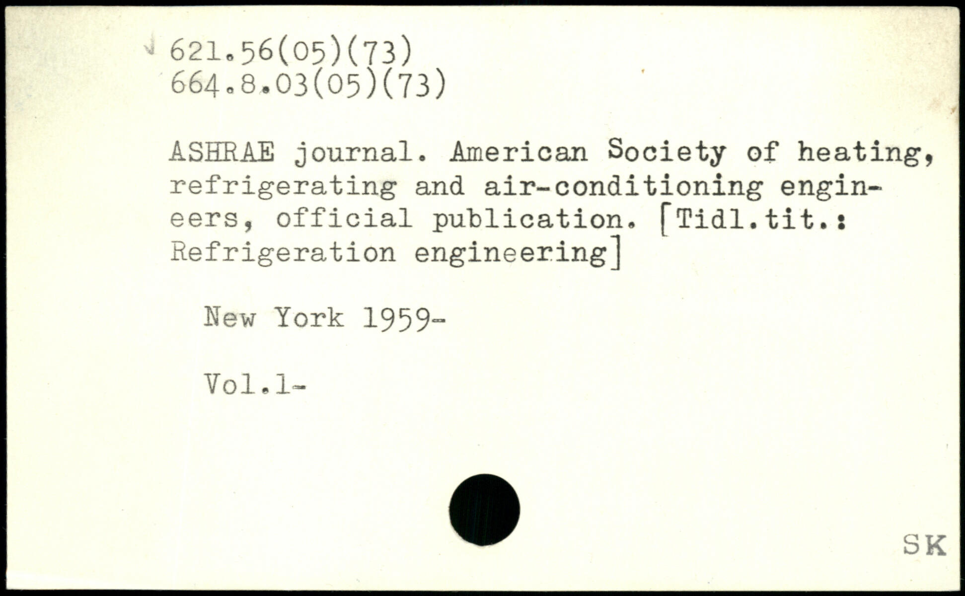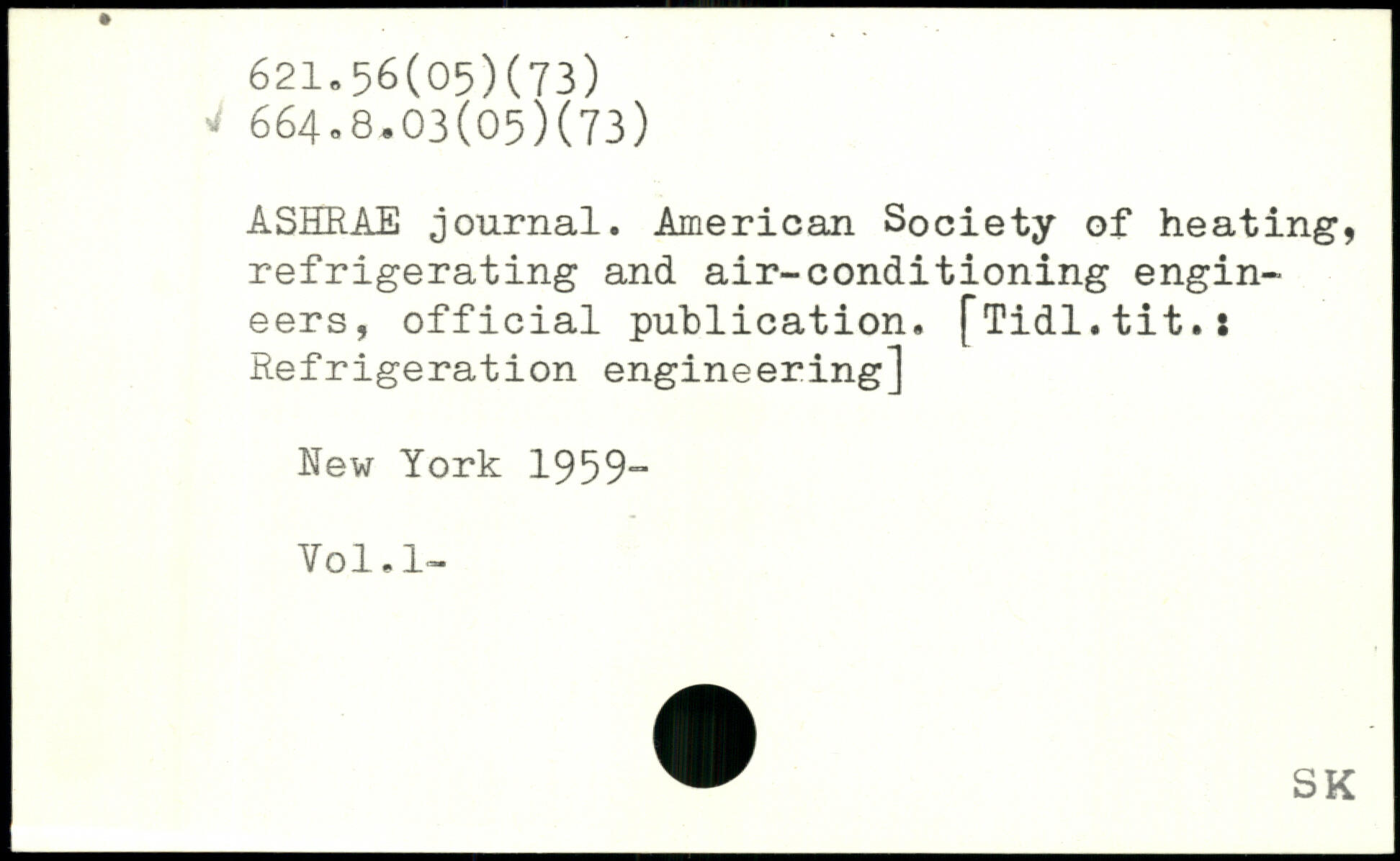 W. jj ASHRAE journal. American Society of heating, refrigerating and air-conditioning engineers, official publication. [Tidl.tit.: Refrigeration engineering]