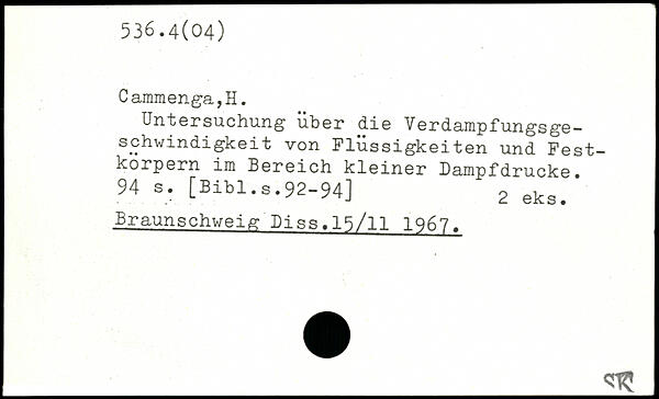 Untersuchung über die Verdampfungsgeschwindigkeit von Flüssigkeiten und Festkörpern im Bereich kleiner Dampfdrücke.
