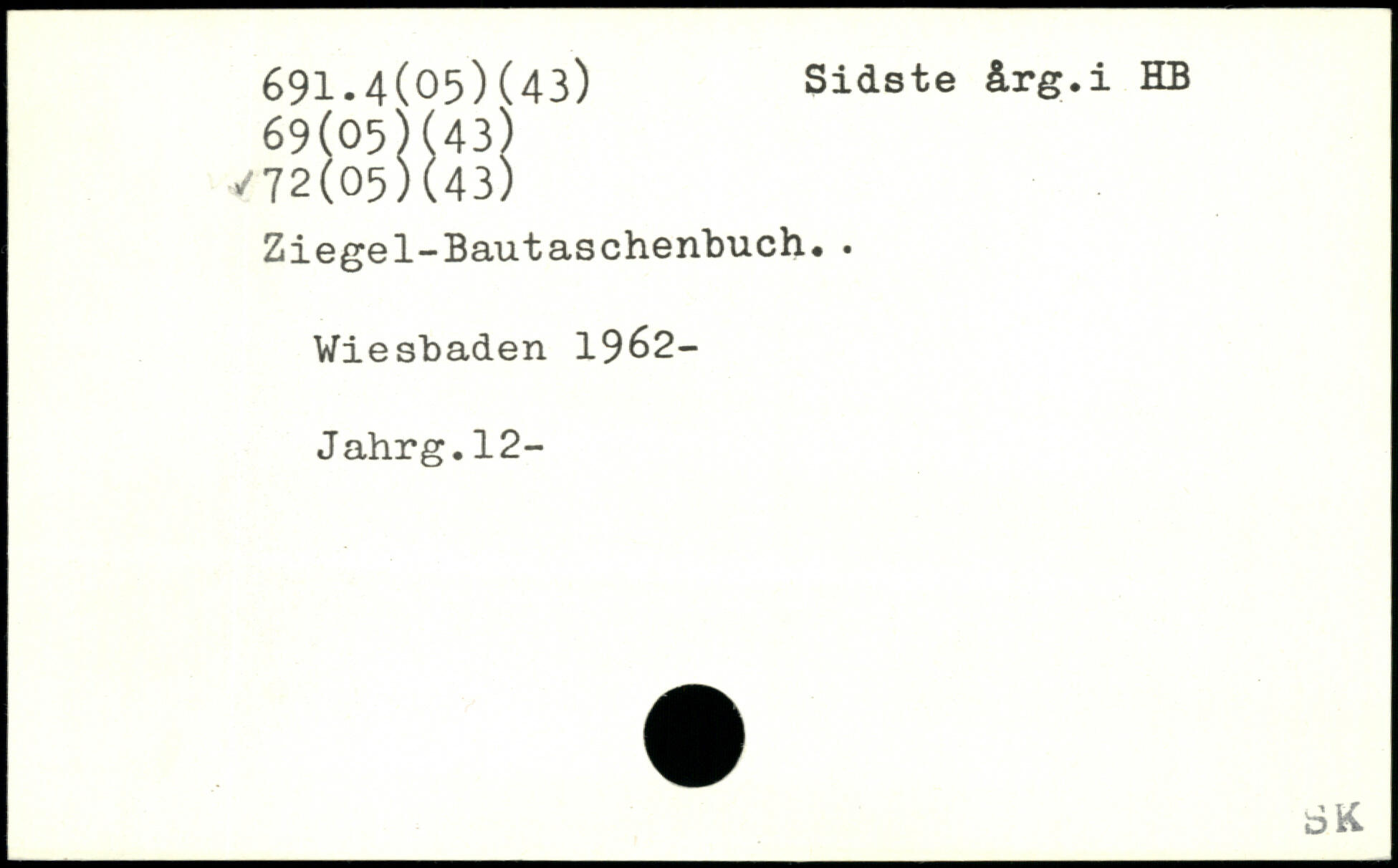 Ziegel-Bautaschen"buch. . Wiesbaden 1962-Jahrg.12-