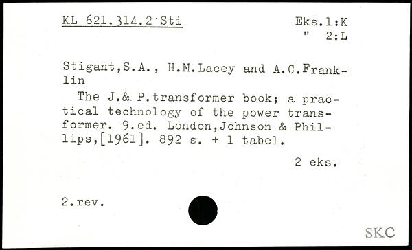 The J.&. P.transformer book; a practical technology of the power transformer.