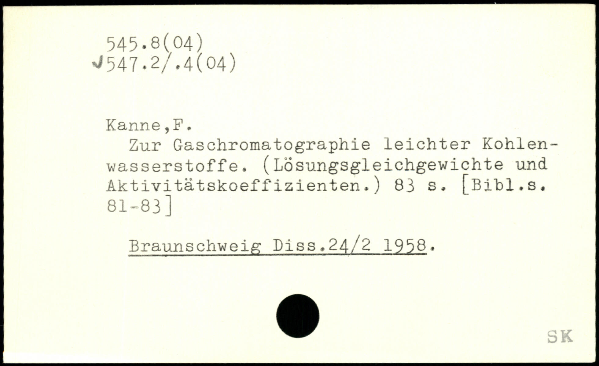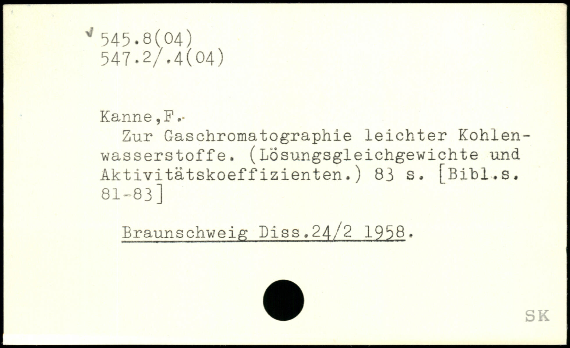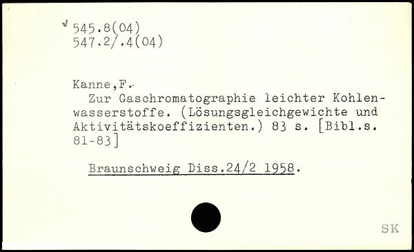 Zur Gaschromatographie leichter Kohlenwasserstoffe. (Lösungsgleichgewichte und Aktivitätskoeffizienten.)