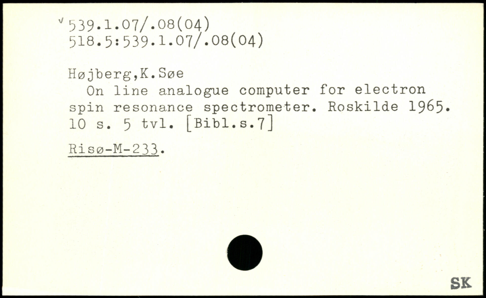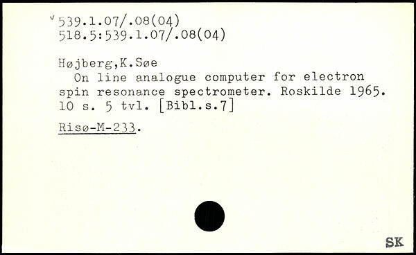 H0jberg,K.S0e On line analogue computer for electron spin resonance spectrometer. Roskilde 1965.