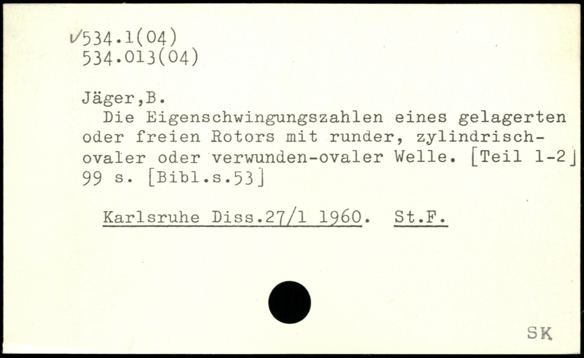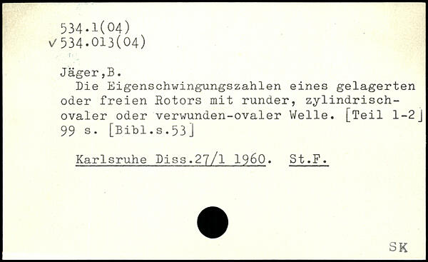 Die Eigenschwingungszahlen eines gelagerten oder freien Rotors mit runder, zylindrischovaler oder verwunden-ovaler Welle. [Teil 1-2J