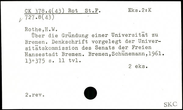 Über die Gründung einer Universität zu Bremen. Denkschrift vorgelegt der Universität skominission des Senats der Freien Hansestadt Bremen.