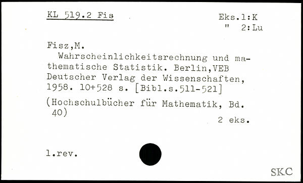 Wahrscheinlichkeitsrechnung und mathematische Statistik. Berlin,VEB Deutscher Verlag der Wissenschaften, 1958.