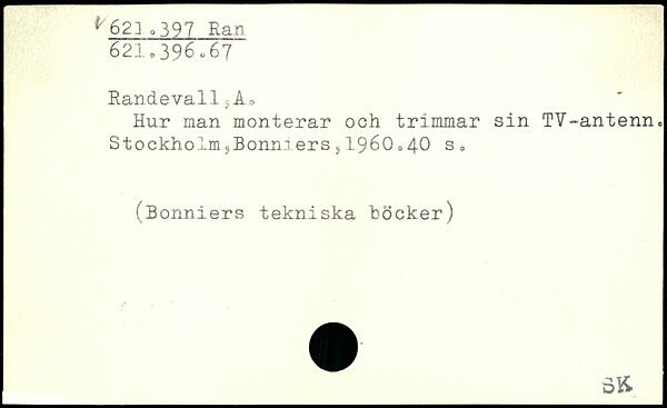 Randeval1SA0 Hur man monterar och trimmar sin TV-antenn. Stockholm,Bonnierss1960.