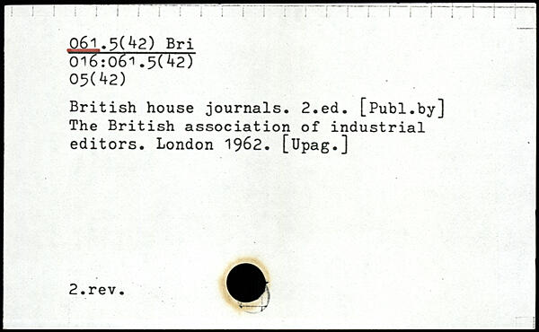 UDK: 061.5(42) Bri, 015:061.5(42), 05(42)