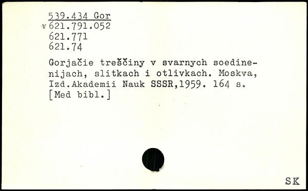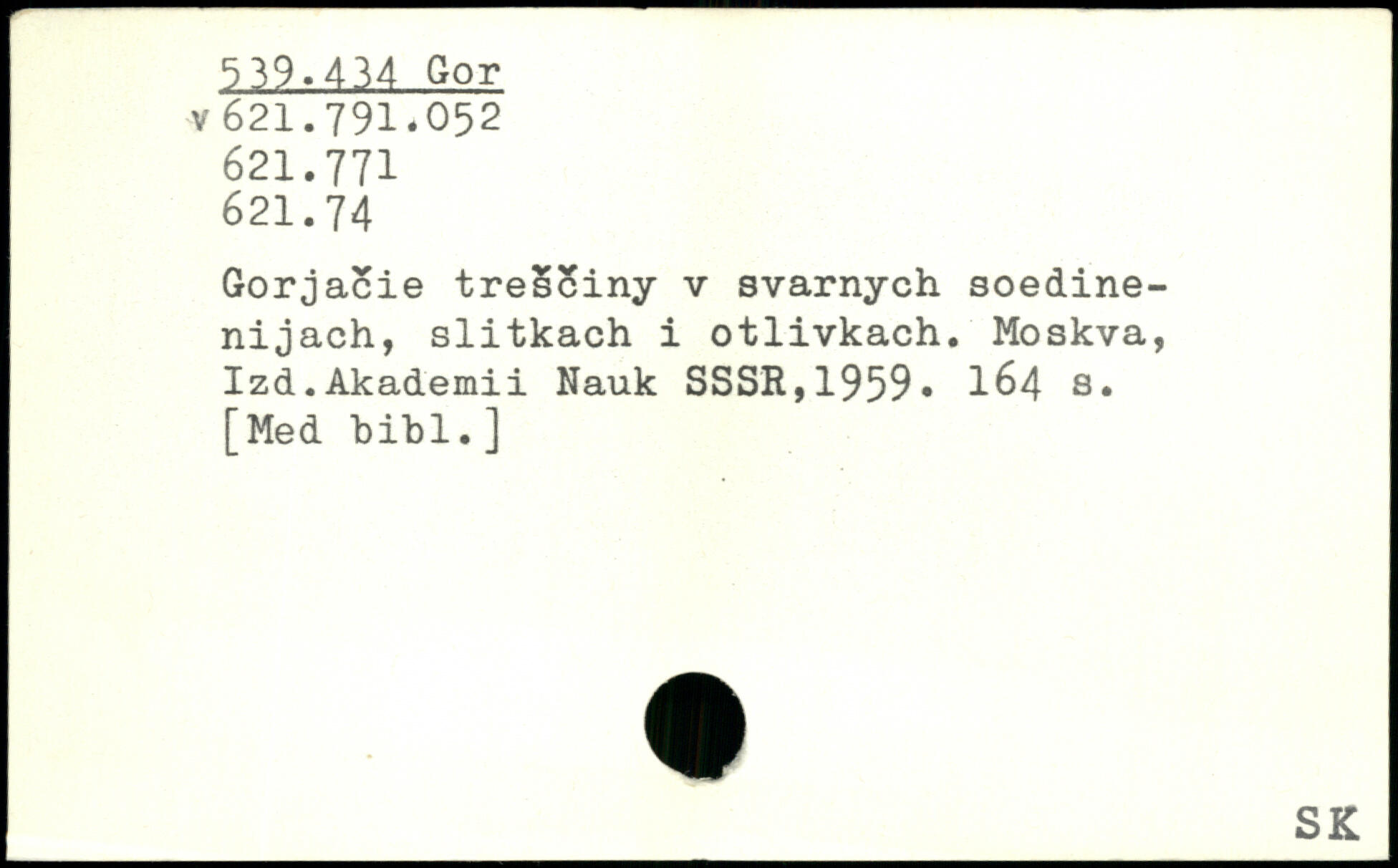 Gorjacie tresciny v svarnych soedine-nijach, slitkach i otlivkach. Moskva, Izd.Akademii Nauk SSSR,1959, 1&