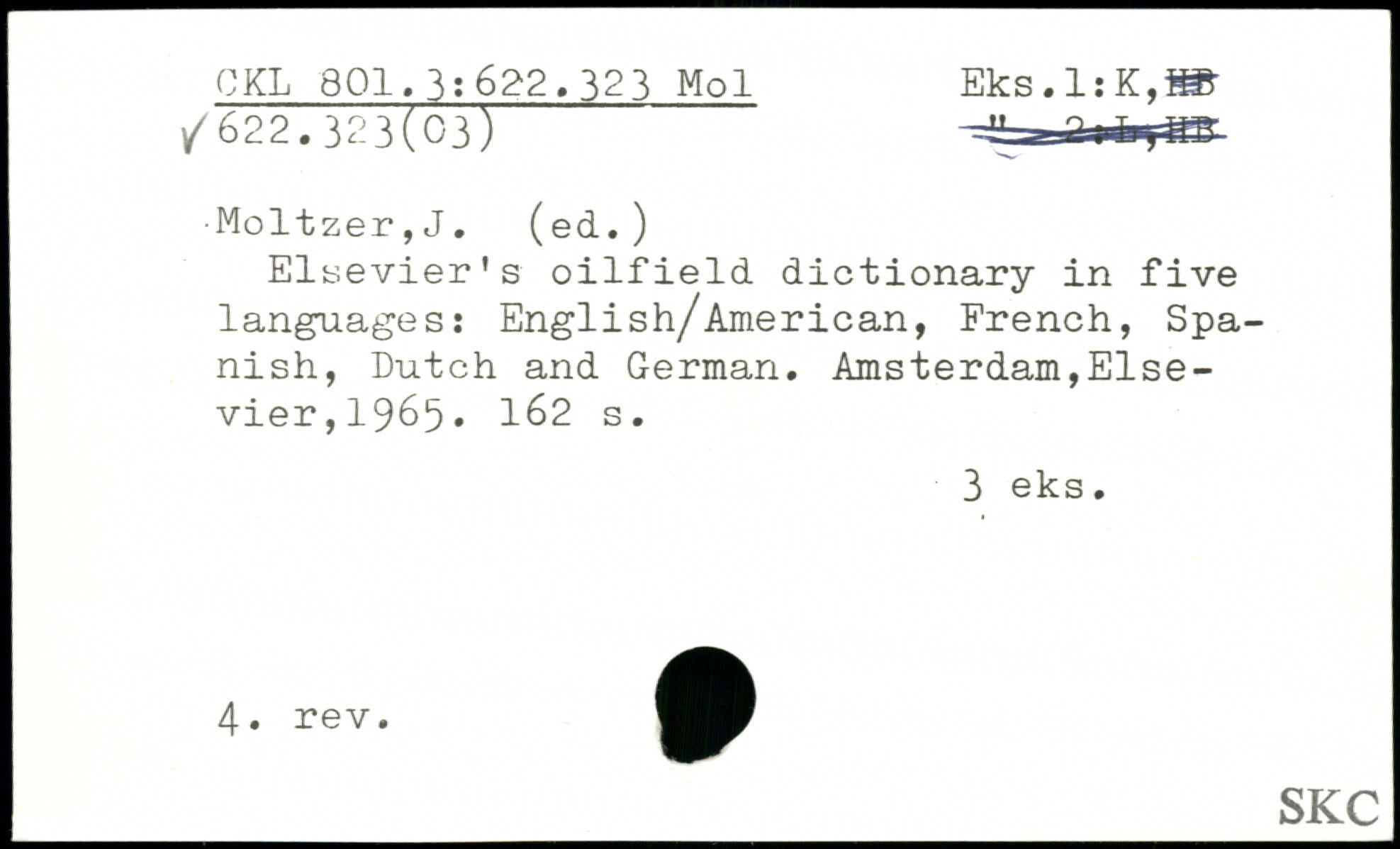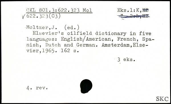 Elsevier's oilfield dictionary in five languages: English/American, French, Spanish, Dutch and German.