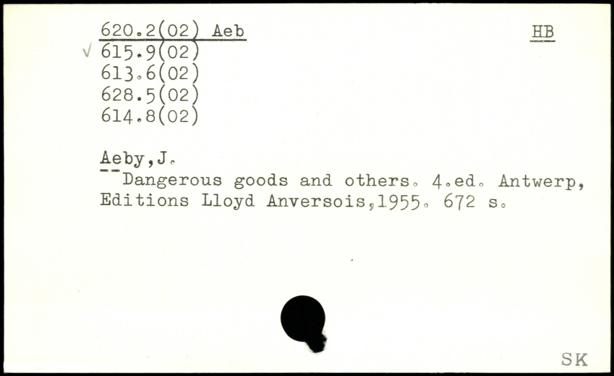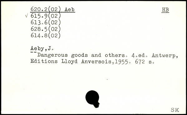 Dangerous goods and others. Antwerp, Editions Lloyd Anversoiss1955.