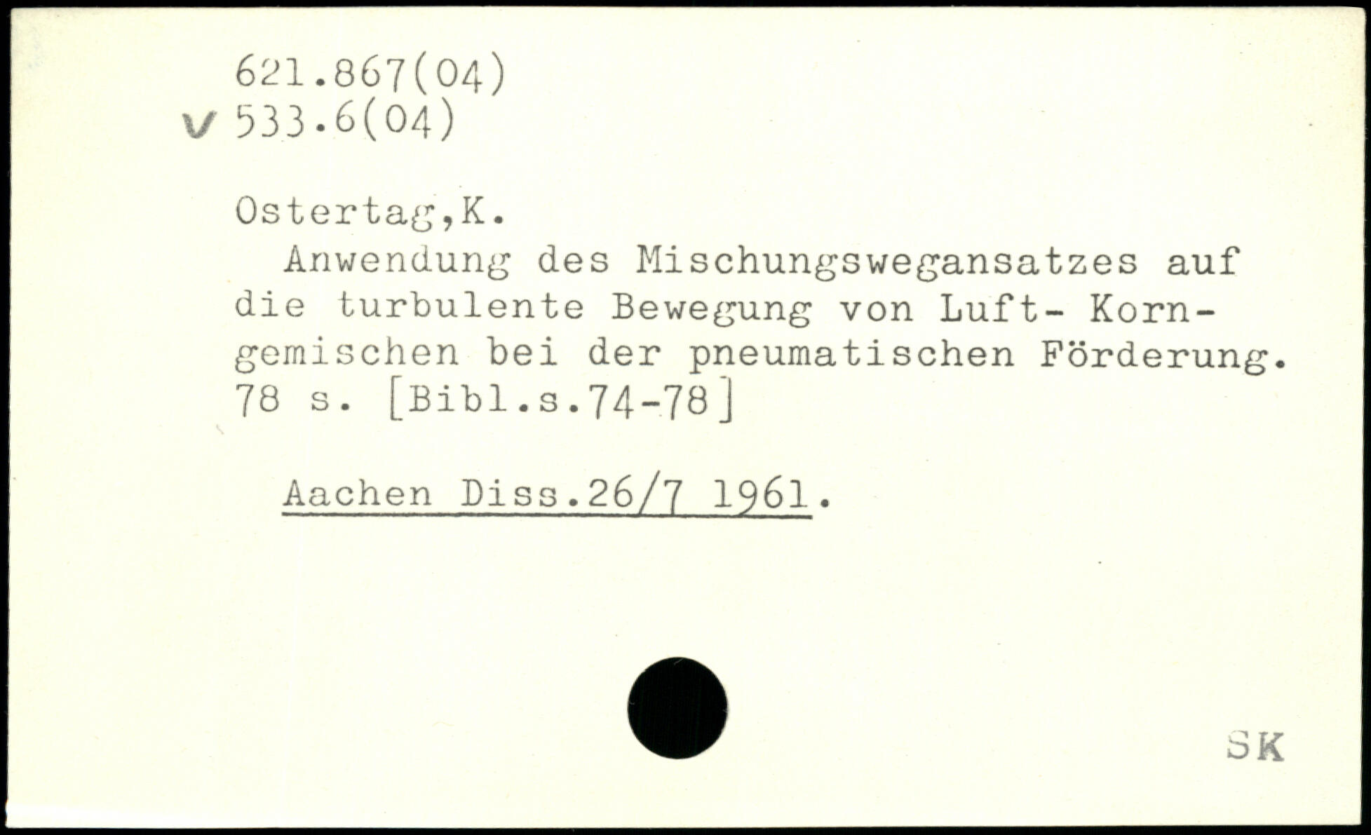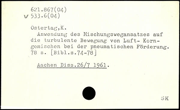 Anwendung des Mischungswegansatzes auf die turbulente Bewegung von Luft- Korngemischen bei der pneumatischen Förderung.