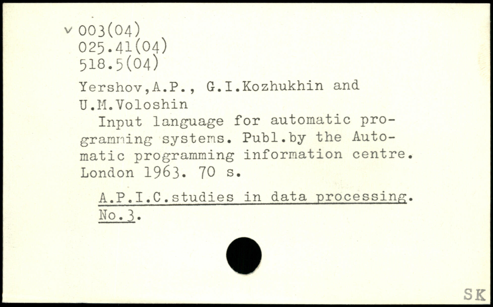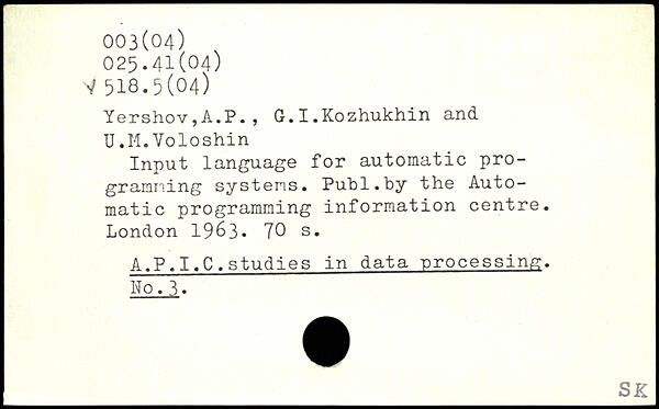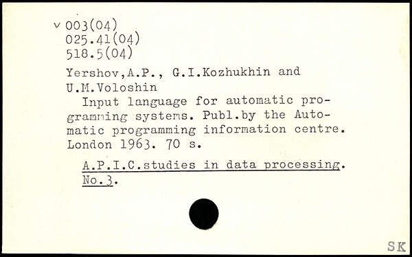 Forfatter: A.P. Yershov, G.I. Kozhukhin, U.M. Voloshin