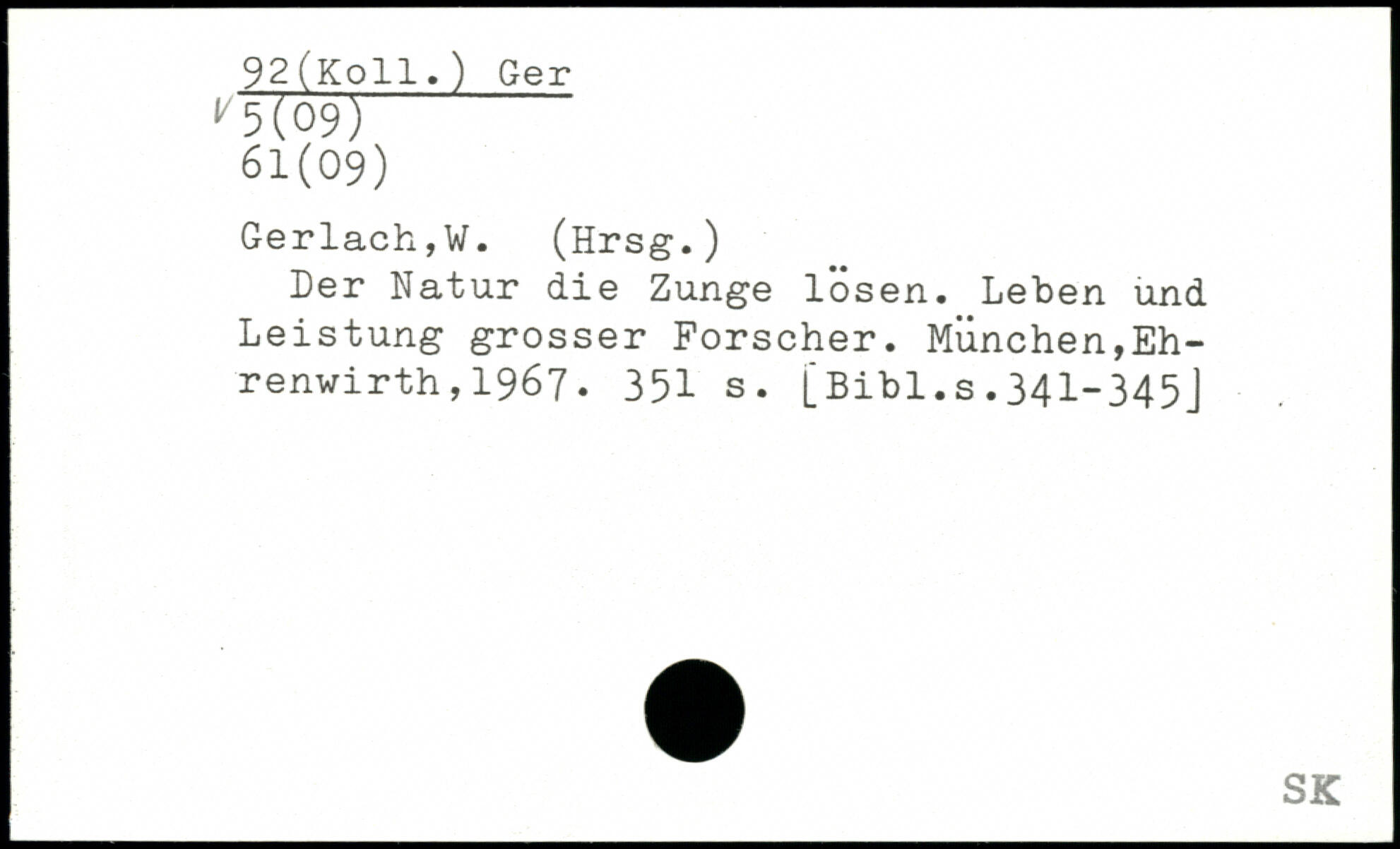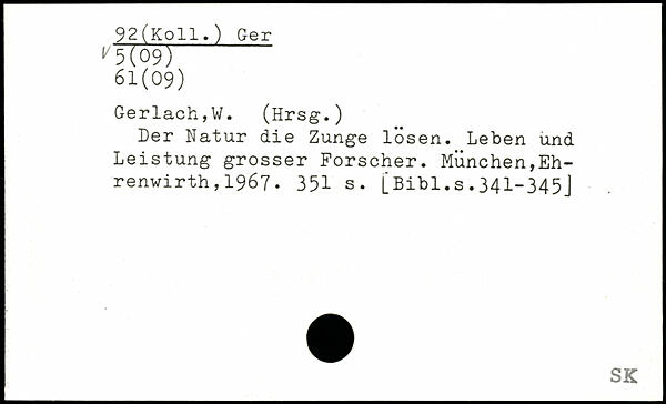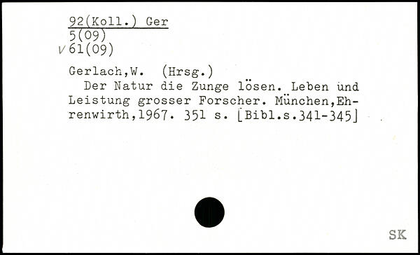 Der Natur die Zunge lösen. Leben und Leistung grosser Forscher. MÜnchen,Eh-renwirth,1967.