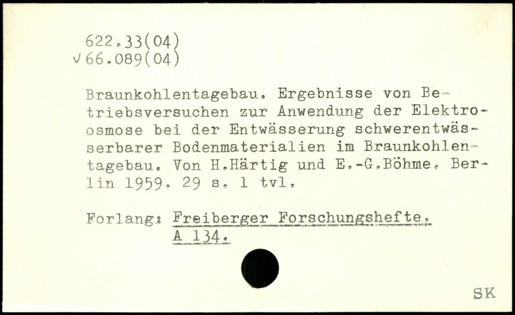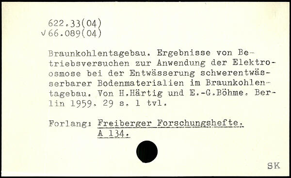Braunkohlentagebau, Ergebnisse von Betriebsversuchen zur Anwendung der Elektro-osmose bei der Entwässerung schwerentwässerbarer Bodenmaterialien im Braunkohlentagebau. Von H.Härtig und E,-G,Böhme.