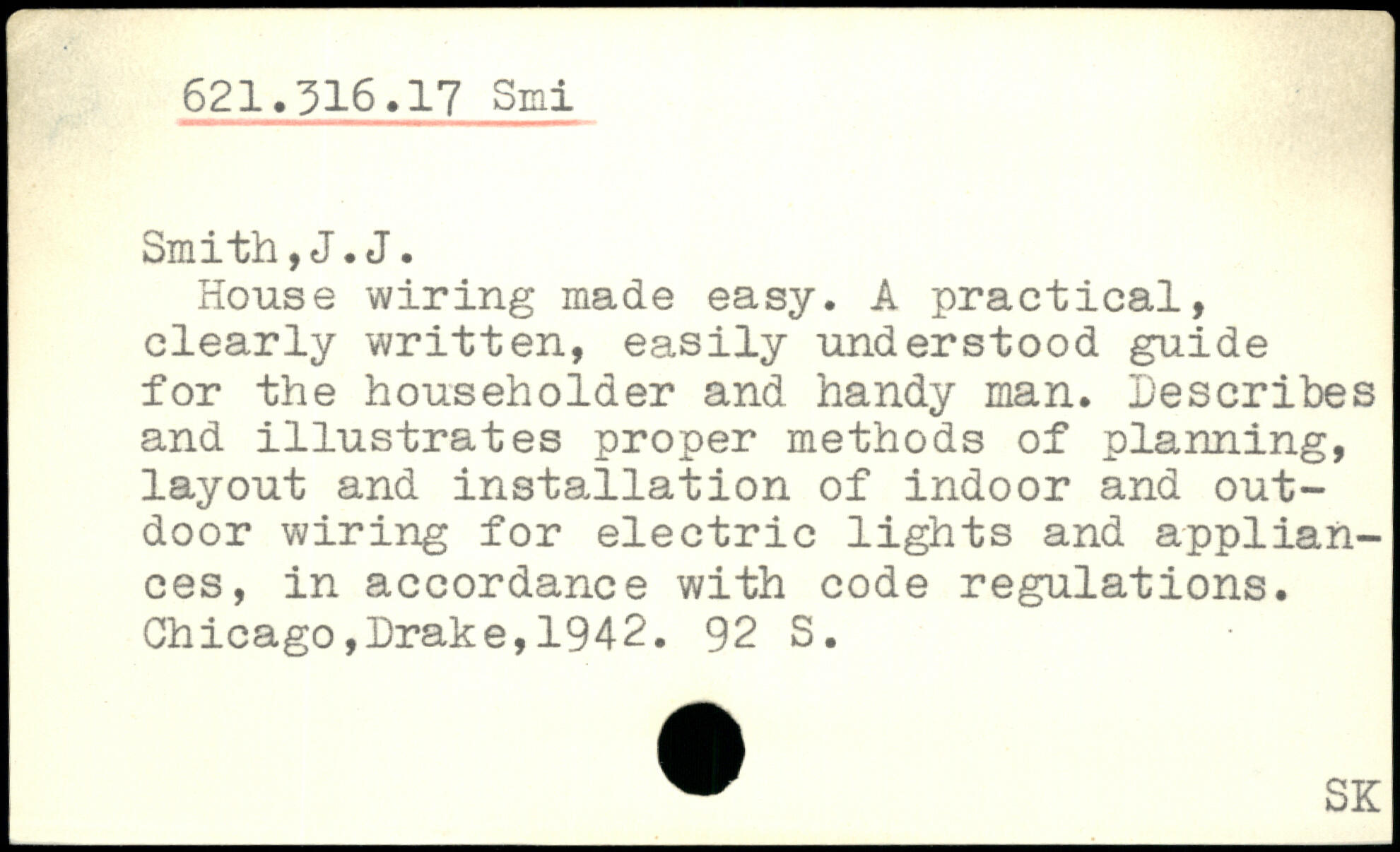 House wiring made easy. A practical, clearly written, easily understood guide for the householder and handy man. Describes and illustrates proper methods of planning, layout and installation of indoor and outdoor wiring for electric lights and appliances, in accordance with code regulations.