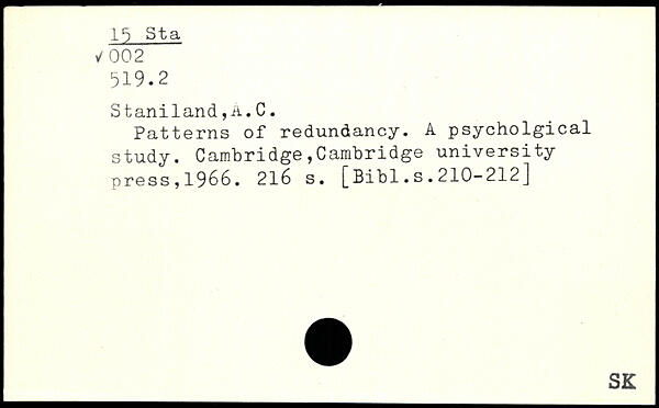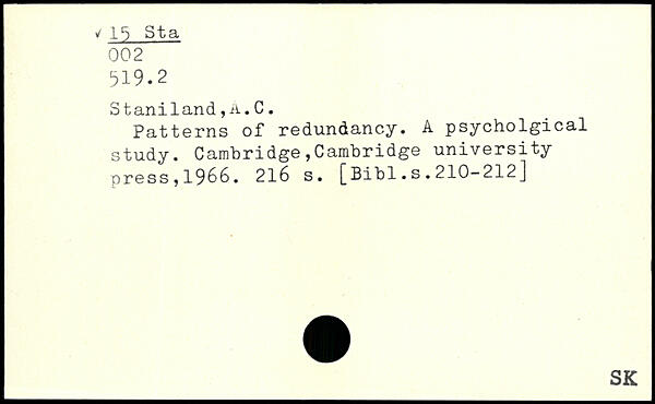 Staniland,a.C. Patterns of redundancy. A psycholgical study.