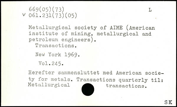 Metallurgical society of AIME (American institute of mining, metallurgical and petroleum engineers). Transactions.